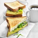 To assemble, spread some mayonnaise on the untoasted side of each slice of bread. Top four of the bread slices with the egg squares and cover with the remaining bread. Serve immediately. Serves 4.