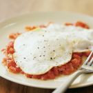 Peperonata is a favorite Italian preparation of sweet peppers, onions and tomatoes, cooked down to a chunky sauce. Here, it is served as a base for eggs over easy. When the soft yolk is broken, it enriches the sauce. You can also pair peperonata with polenta, grilled meats or rice. For an extra flourish, garnish each plate with a sprinkle of freshly grated Parmigiano-Reggiano cheese.