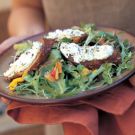 Farmers' Market Greens with Baked Goat Cheese Toasts