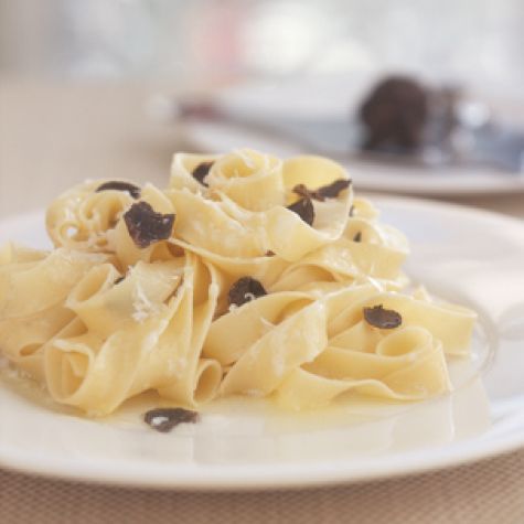 Black truffles are neither as aromatic nor as expensive as white truffles, yet their earthy flavor is still highly prized. They are best served in simple preparations such as this one, where their strong, woodsy aroma can be appreciated. Use truffles as soon as possible after purchasing them, brushing them clean with a soft, dry brush.