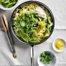 A wonderful way to welcome the new season, this easy pasta recipe showcases a medley of fresh spring vegetables, including peas three ways: sugar snaps, English peas and pea shoots, which are the delicate tendrils of the pea plant. Ricotta cheese lends richness to the dish, while lemon zest and juice brighten the flavors. If you like, you can substitute dried fettuccine for the fresh, cooking it according to the package instructions.