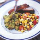 Fresh corn is best between the months of July and September, making it a popular vegetable for a summer barbecue. Try it grilled and folded into this salad with bright cherry tomatoes and tangy feta cheese.