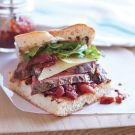 The full-bodied combination of ingredients in this sandwich—Manchego cheese, arugula and a piquant chutney seasoned with sherry vinegar—owes much to the Spanish countryside. Beefy flank steak stands up well to refrigeration, so grilling the night before is a great option for serving the sandwiches at a picnic.