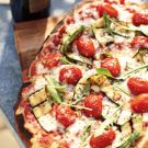 Focaccia Pizza with Zucchini, Tomatoes and Arugula