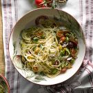 - 1 batch Food Processor Pasta Dough, rolled and cut into spaghetti or similar shape