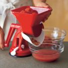 Place the tomatoes in a tomato press or food mill set over a bowl and pass them through the press or mill. Repeat as needed until all the large pieces of tomatoes are crushed. Set aside.