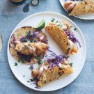 These fish tacos are prepared Baja-style: coated with a beer batter and deep-fried, then popped into warm corn tortillas along with crunchy shredded cabbage, fresh cilantro and homemade taco sauce. Top them off with a squeeze of fresh lime juice. Serve the fish as soon as possible after frying; if it sits for too long, the crust gets soggy.