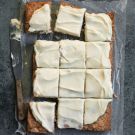 Using a long offset spatula, spread the frosting over the surface of the cake. Cut the cake into squares and serve. Serves 12.