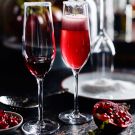 Here, a kir royale, a festive sparkling drink made with Champagne and crème de cassis, or black currant liqueur, gets dressed up for the holidays with the addition of fresh ginger and pomegranate seeds.