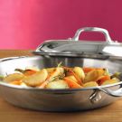 In a petite braiser or fry pan over medium-high heat, melt 1 Tbs. of the butter. Add one-third of the carrots, turnips and potatoes, cut side down, and cook until browned, 3 to 5 minutes; transfer to a plate. Brown the remaining vegetables in 2 batches, melting 1 Tbs. of the butter before cooking each batch.