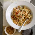 Drain the pasta, reserving 1/2 cup (4 fl. oz./125 ml) of the cooking water, and return the pasta to the pot. Add the cauliflower, lemon juice, parsley, capers, Calabrian chiles and the reserved cooking water and stir to combine. Stir in the bread crumbs and cheese and taste, adjusting the seasoning with salt and pepper if necessary. Garnish with additional Calabrian chiles to taste and serve immediately. Serves 4.