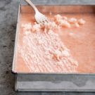 Pour the mixture into a shallow metal baking pan. Place in the freezer and freeze, whisking every 30 minutes, until semifirm, about 3 hours. Cover with plastic wrap and return to the freezer without stirring until frozen solid, at least 8 hours or up to 24 hours.