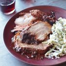 Transfer the pork to a carving board, cover loosely with aluminum foil and let rest for 20 minutes. Carve into thick slices and arrange on a platter. Serve immediately. Serves 8.