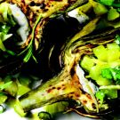 Place some anchovy mayo in the cavity of each grilled artichoke and top with a big scoop of the cucumber-lemon salsa. Garnish with fresh tarragon and parsley. Serves 4.