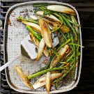 A member of the chicory family, endive has a crunchy texture and a pleasantly bitter taste that softens with cooking. Here, endive is grilled with asparagus and then tossed with orange zest and juice, which add bright flavor to the dish. Long strips of zest look especially attractive, but finely grated zest is equally delicious.