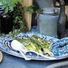 Transfer the asparagus to a platter. Top with the pistachios and cheese and drizzle with olive oil. Serves 4 to 6.
