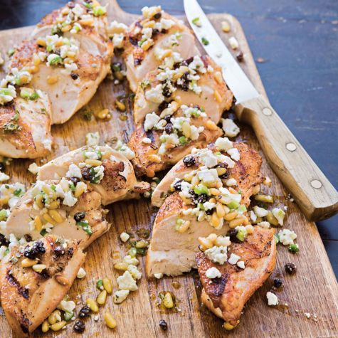 Grilled Chicken Breasts with Feta and Pine Nut Relish