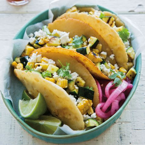 When corn and zucchini are overflowing the stalls at the farmers’ market, take advantage of their abundance to make these fresh-tasting tacos, whose ingredients cook in mere minutes on the grill.