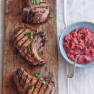 Grilled Double-Cut Pork Chops with Rhubarb Mostarda