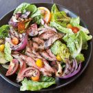 Flank steak is a great choice for salads, as it is full flavored but must be tenderized by slicing it thinly across the grain—letting you toss it easily with other ingredients. Look for cherry tomatoes in mixed sizes and colors for visual interest.