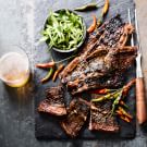 We love short ribs, but English-style ribs—thick pieces that are cut between the ribs—can take hours to cook to tender perfection. Luckily, flanken-cut short ribs, which are thinly sliced across the ribs, are best quickly cooked over medium-high heat, making them a great choice for a weeknight meal. Just sprinkle these short ribs with seasonings, grill for about 3 minutes per side and pile them high on platter. Add a final flourish of flaky sea salt just before serving.