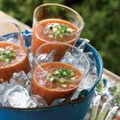 Grilling the vegetables for a cold gazpacho adds an unexpected depth of flavor. This summer soup tastes best when prepared a day in advance, refrigerated overnight to meld the flavors together and finished with fresh herbs at the table.