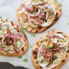 Grilled Naan with Smoky Eggplant Puree and Grilled Red Onions