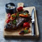 Grilled New York Strip Steak with Tomatoes and Peppers