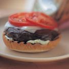 Portobello burgers can be made with a variety of toppings. In place of the Monterey Jack cheese and tomatoes, use roasted red peppers and fresh goat cheese. Simply spread the goat cheese on one side of each toasted bun.