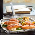 This grilled salmon is easy enough to prepare for a weeknight dinner. If you’re lucky enough to have your own lemon tree, toss a few sprigs of leaves in the griddle pan along with the lemon halves—the leaves will infuse the fish with even more lemony aroma and flavor.