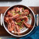 Here, shrimp are cooked with their shells intact, which imparts great flavor. They’re a bit messy to peel before eating, so have plenty of napkins on hand.