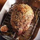 Transfer the pan to the oven and roast for 30 minutes. Reduce the oven temperature to 350ºF. Continue roasting until an instant-read thermometer inserted into the thickest part of the meat, away from the bone, registers 130ºF for medium-rare, 1 1/4 to 1 1/2 hours more.