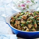 Our springtime stuffing mix, inspired by the classic herbs used in Provençal kitchens, is the basis for this fragrant savory bread pudding, the perfect accompaniment to a variety of roast meats.