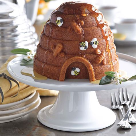Shaped like a hive and adorned with bees made of royal icing, this whimsical cake will be all the buzz at your next gathering. A drizzle of honey, added right before serving, is the perfect finish for the cake.