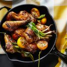 Arrange the chicken pieces and lemon halves on the baking sheet. Baste the chicken with the reduced honey mixture, transfer to the oven and roast until the chicken is cooked through, 25 minutes to 30 minutes. Remove the chicken from the oven and arrange on a serving platter with the lemons alongside. Serves 4.