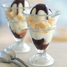 To make each parfait, spoon 1 Tbs. of the warm fudge sauce into the bottom of a glass. Top with a scoop of ice cream and spoon in pieces of the pound cake. Top with another scoop of ice cream. Spoon about 1 Tbs. fudge sauce over the ice cream. Repeat with another layer of pound cake, ice cream and fudge sauce. Serve immediately. Serves 6.