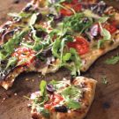 Carefully transfer the pizzas to a cutting board and top each with some of the arugula and basil. Drizzle with a little olive oil and sprinkle with salt. Cut into wedges and serve immediately. Serves 4.