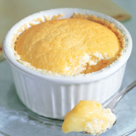 Using an electric mixer on high speed, whip the egg whites until foamy. Sprinkle in the remaining 1/4 cup sugar and whip until soft peaks form when the beaters are lifted. Using a silicone spatula, stir one-fourth of the egg whites into the lemon mixture. Gently fold in the rest just until no streaks of egg white are visible. Divide the mixture evenly among the ramekins.