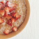 Spoon the porridge into 4 bowls and top each portion with 1/4 cup strawberries, 1 Tbs. cream and 2 tsp. sugar. Serve immediately. Serves 4.
