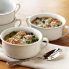 Add the meatballs and the white beans to the soup and simmer until the meatballs are cooked through, about 15 minutes. Adjust the seasonings with salt and pepper. Ladle the soup into warmed bowls and serve immediately. Pass grated cheese at the table. Serves 10.