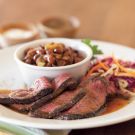 Transfer the steak to a cutting board, cover loosely with aluminum foil and let rest for 5 minutes. Cut the steak into thin slices and arrange on a warmed platter. Serve with baked beans. Serves 6 to 8.