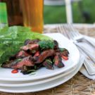 The national dish of Korea, kalbi kui are delicious marinated short ribs, usually cooked on a very hot tabletop charcoal grill, sliced and wrapped in lettuce leaves. Keep a close eye on the grill and be careful not to burn the ribs—they cook very quickly.