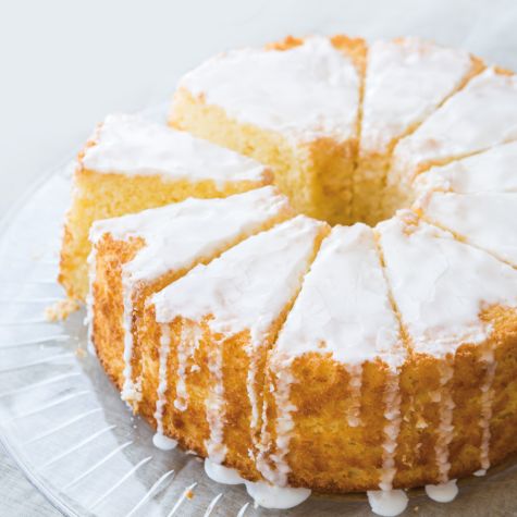 This moist, lemony chiffon cake is simple, delicate and delicious. The texture falls somewhere between a dense butter cake and a light and airy sponge cake. Be careful not to overwhip the egg whites, or the cake will be dry. If desired, serve slices of the cake with blueberries and vanilla ice cream.