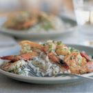 Fluff the rice and gently stir in the remaining cilantro. Divide the rice among 4 plates, top with the shrimp and serve immediately. Serves 4.