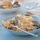 Medium-size shrimp can be substituted for the clams. Peel and devein 1 1/2 lb. shrimp, leaving the tails intact. Cook the shrimp with the garlic until they turn opaque, about 3 minutes, then finish the recipe as directed.