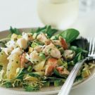 Divide the greens among individual plates or shallow bowls. Arrange the grapefruit sections on the greens, dividing them evenly. Top with the lobster mixture and then with the avocado. Add the remaining 1 1/2 Tbs. olive oil and the remaining 1/2 Tbs. vinegar to the large bowl, mix well and drizzle over the salads. Garnish with the remaining 2 tsp. chives and serve immediately. Serves 6 to 8.