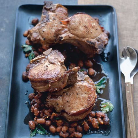 • Sautéed Pork Chops with Kale Salad