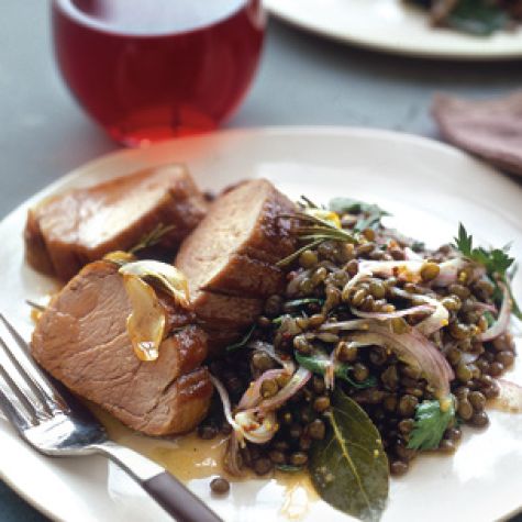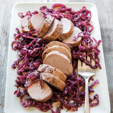 • Tangy Braised Pork Loin with Pear and Prosciutto Salad