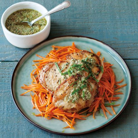 • Chicken Cutlets and Carrots with Mint Pesto