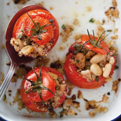 • Baked Tomatoes with Tuna, White Beans and Bread Crumbs